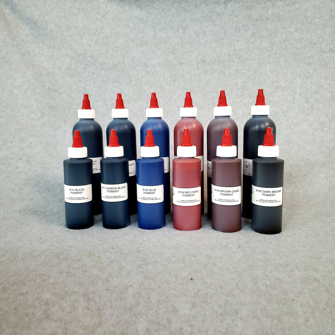 110 Black, 111 Carbon Black, 120 Blue, 138 Red Oxide, 140 Dark Brown, 145 Brown Oxide