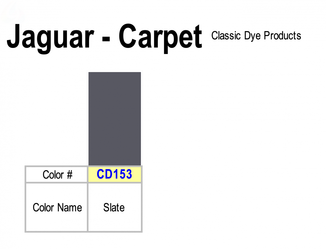 DESCRIPTION: Jaguar Carpet Dye Colors for easy application.