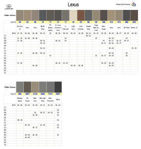 Lexus colors, Lexus color chart